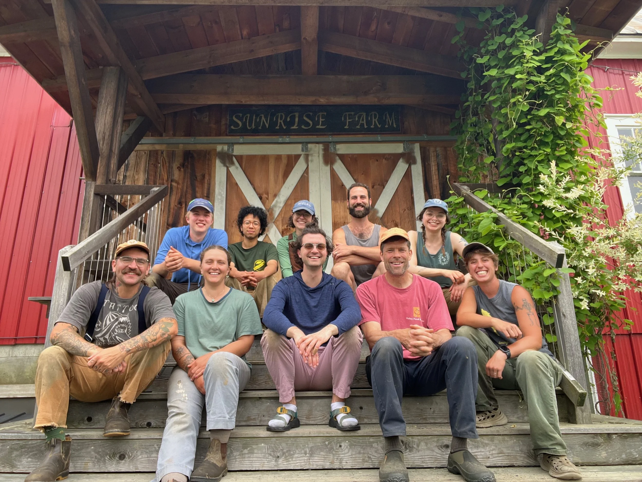Trevor grew up in the Upper Valley, playing on the Connecticut and White rivers and working in the food industry. Coffee, sandwiches, and granola were his forte, until he expanded his picky palate and learned how to cook real fresh food! Moving across Vermont, from Burlington to Brattleboro, Trevor fell in love with high quality, fresh local meat, and produce. After studying philosophy and biology in college, he realized that the best course of action to address climate and environmental issues is to put the hands in the soil and learn to grow food for a local community. Sunrise Farm gave Trevor the opportunity to learn the trade, and every day he feels lucky to be a part of such a hard-working, fun-loving team!